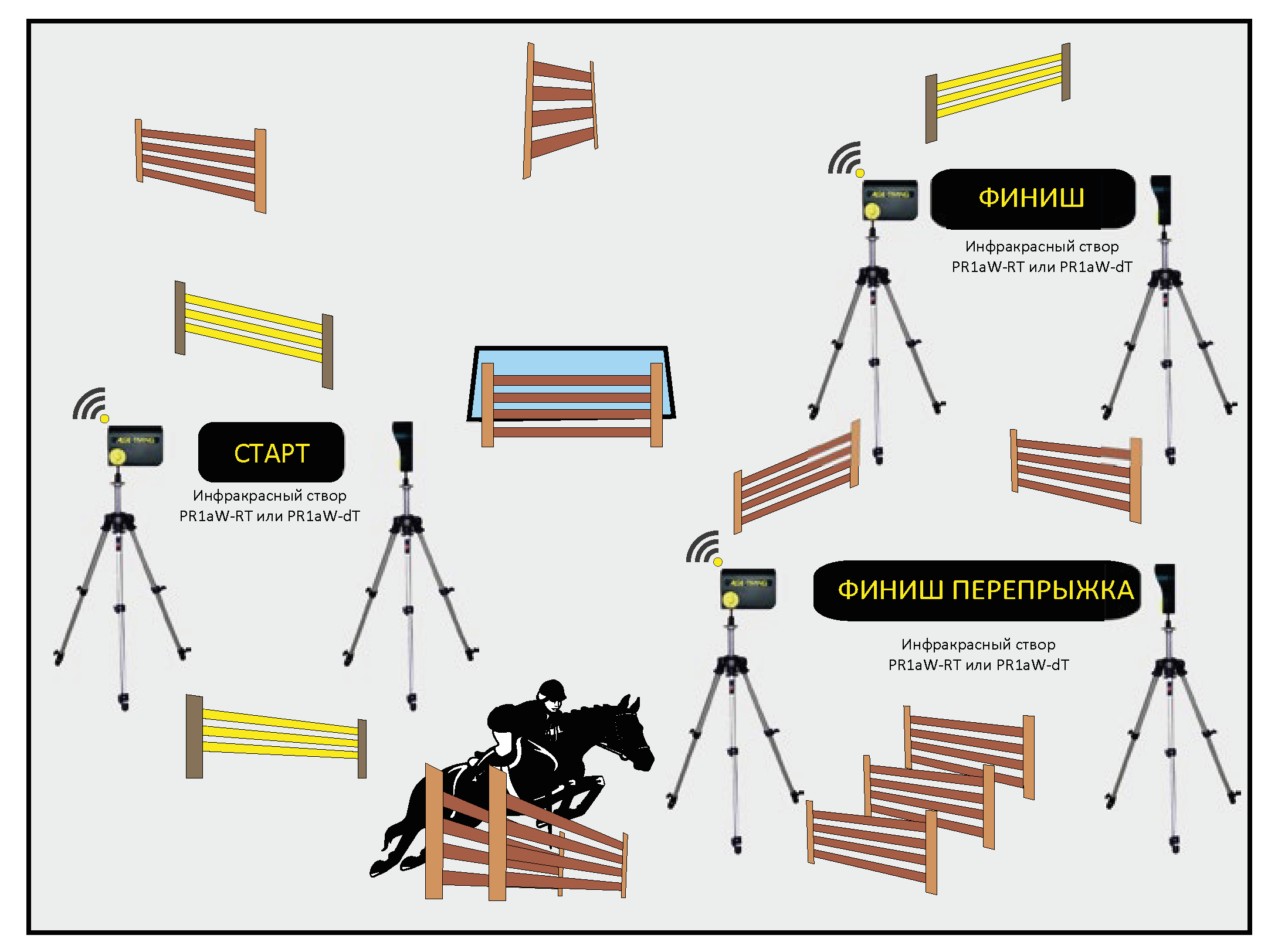 Various timing systems can be used for show jumping competitions. Particularly popular is the timing system with the proven TdC8001 timer and WTN radio system.